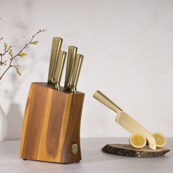 Noże kuchenne | Zestaw 5 noży w drewnianym akacjowym bloku Sahara Collection BH-3125