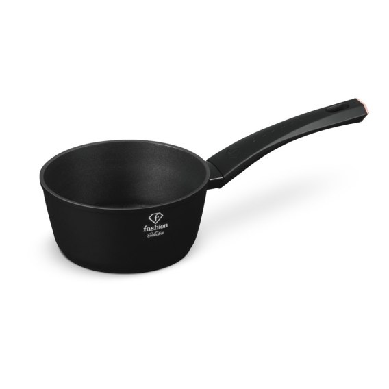 Materiał: Kute aluminium Powłoka: Nieprzywierająca, TitanPro Wymiary: Ø16 x 7 cm Pojemność: 1,2L Kolor: Matowa czerń z różowo-złotymi akcentami Kolekcja: Matte Black- Rose Gold Collection